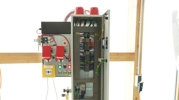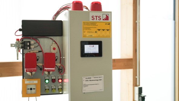 Brandschutzsysteme von STS bestehen typischerweise aus den Kernkomponenten: Sensorik, genauer gesagt UV- oder IR-Detektoren zur Branderkennung, teilweise auch Temperatur- und Rauchmelder. Die Signale der Sensorik wertet eine Steuerung aus und leitet im Ernstfall eine Löschung bzw. Abschaltung ein. Bei STS wird in der Regel mittels CO₂-Eindüsung gelöscht oder eine Flammensperre durch CO₂ oder eine mechanische Barriere gesetzt. Die Kommunikation zwischen Sensorik, Aktorik und Steuerung läuft ausschließlich über Hardwarekontakte – ohne Protokolle.