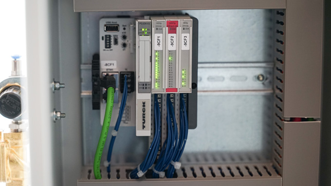 TURCK stellte für STS zwei alternative Lösungen zusammen: eine mit HMI und I/O-System BL20 mit integrierter Steuerung sowie alternativ eine Lösung, bei der die Steuerung im HMI integriert ist und ein BL20 mit reiner I/O-Funktion angeschlossen ist. Der Charme an diesen Lösungen ist, dass man bei Lieferproblemen einer Komponente immer noch die alternative Kombination aus HMI und I/O-System wählen kann.