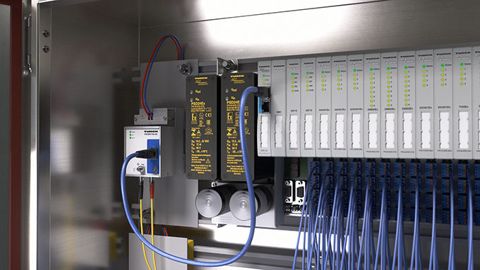 Der Anwender nutzt den kompakten Modulträger MT08-2G mit dem Ethernet-Gateway GEN-2G. Von dort gelangen die Daten über Ethernet zur Steuerung der Produktionslinie. Alle excom-Komponenten lassen sich platzsparend in Kompaktschränken installieren und sind für den Einsatz in explosionsgefährdeten Bereichen zertifiziert. Über integrierte Diagnosefunktionen liefert excom Status- und Prozessdaten. Diese Daten können Dank Multiprotokoll über eine parallele Kommunikation über dieselbe Leitung erfolgen, um maximale Sicherheit der Prozessdatenkommunikation zu schützen. excom gilt als das kompakteste I/O-System seiner Art. Kein anderes redundantes I/O-System für Ex-Bereiche kann in einem Standardschaltschrank bis zu 960 Signale anbinden.