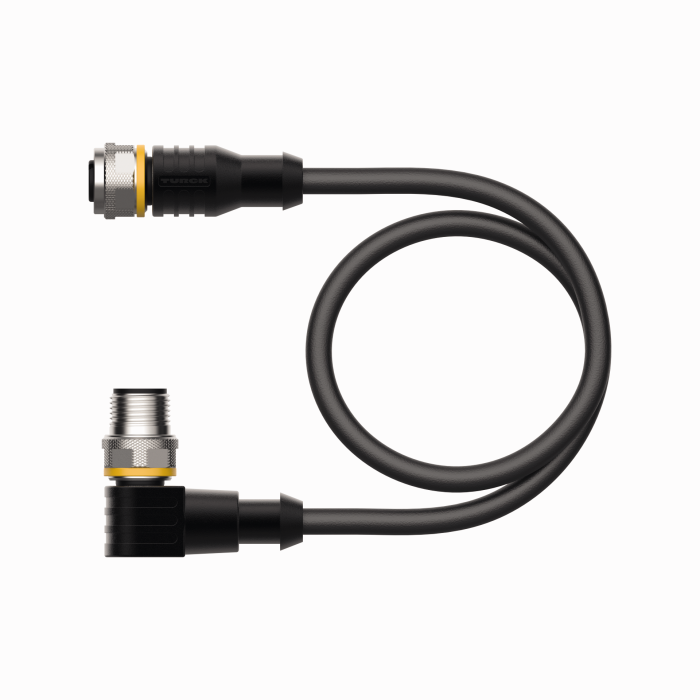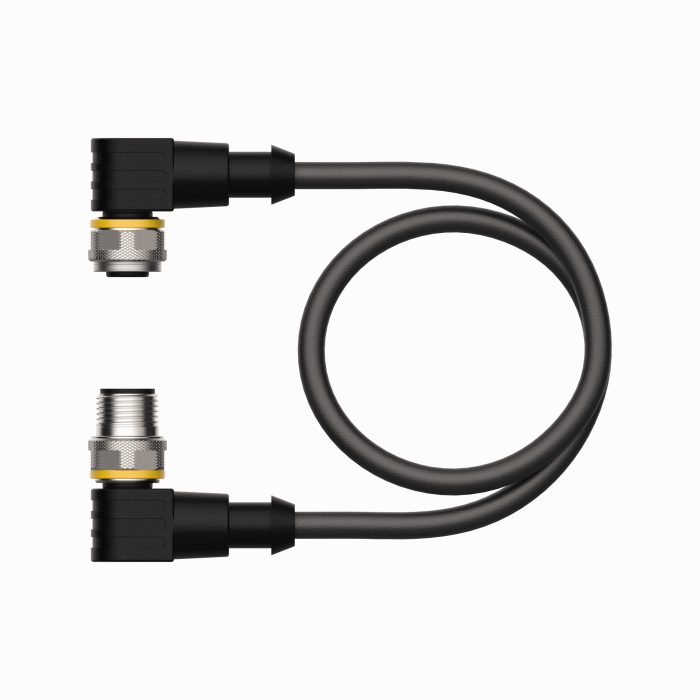 Verbindungsleitung, M12-Kupplung, gewinkelt, 4-polig auf M12-Stecker, gewinkelt, 4-polig; Leitungslänge: 2 m, Mantelmaterial: PUR, schwarz; cULus-Zulassung |